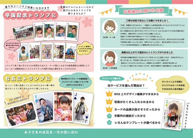 「オリジナルトランプ」のオンデマンドトランプのご案内しました 卒園式や七五三などお子さまへの認知拡大としてご利用いただきました