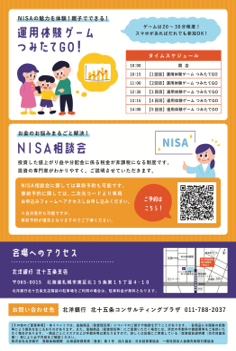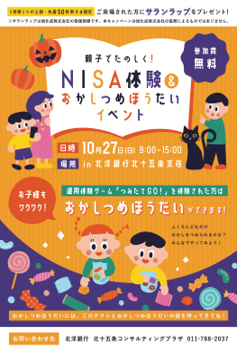 親子で楽しめる「北洋銀行」のイベントご案内をしました。 遊びを通してお金の大切さや仕組みなどを学ぶことができ、当日使えるお菓子詰め放題袋を付けてお配りしました。