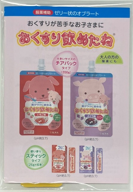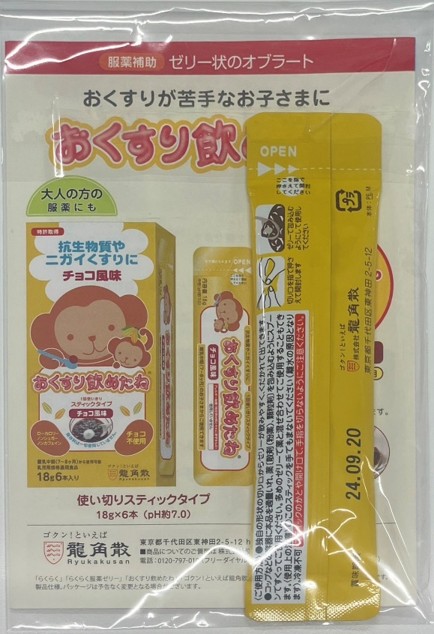 龍角散様より「おくすり飲めたね」の試供品ご案内をしました。 季節の変わり目の時期に活用いただけるよう園児の皆さまにお配りしました。